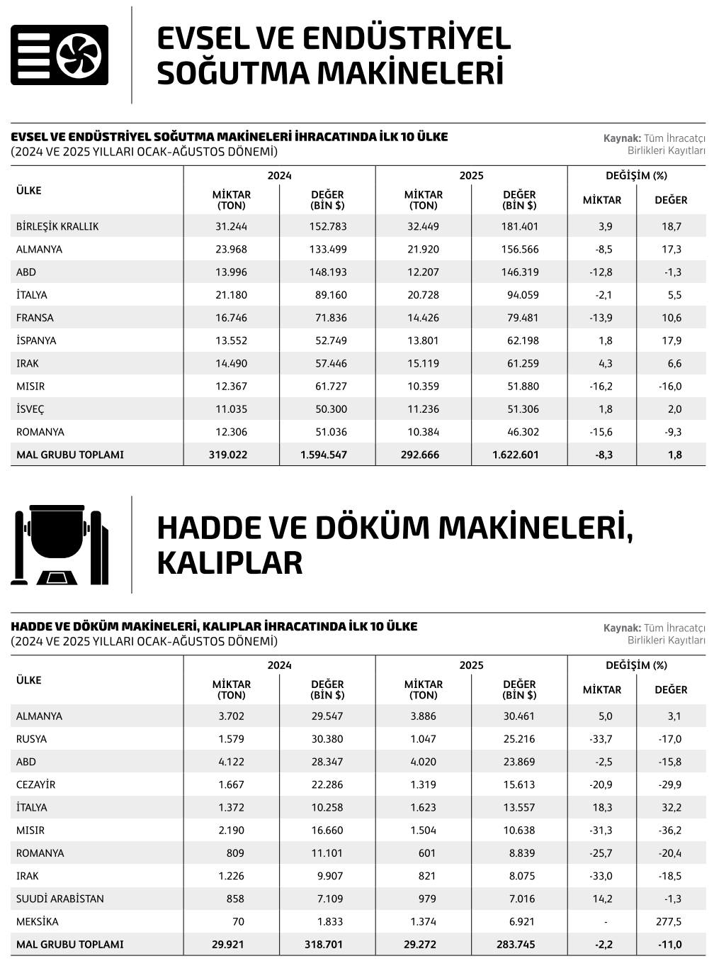 EN FAZLA İHRACATI, 1,6 MİLYAR DOLARLA EVSEL VE ENDÜSTRİYEL SOĞUTMA MAKİNELERİ GERÇEKLEŞTİRDİ. MAKİNE İHRACATININ TÜRKİYE GENEL İHRACATINDAKİ PAYI YÜZDE 10,3 OLDU.