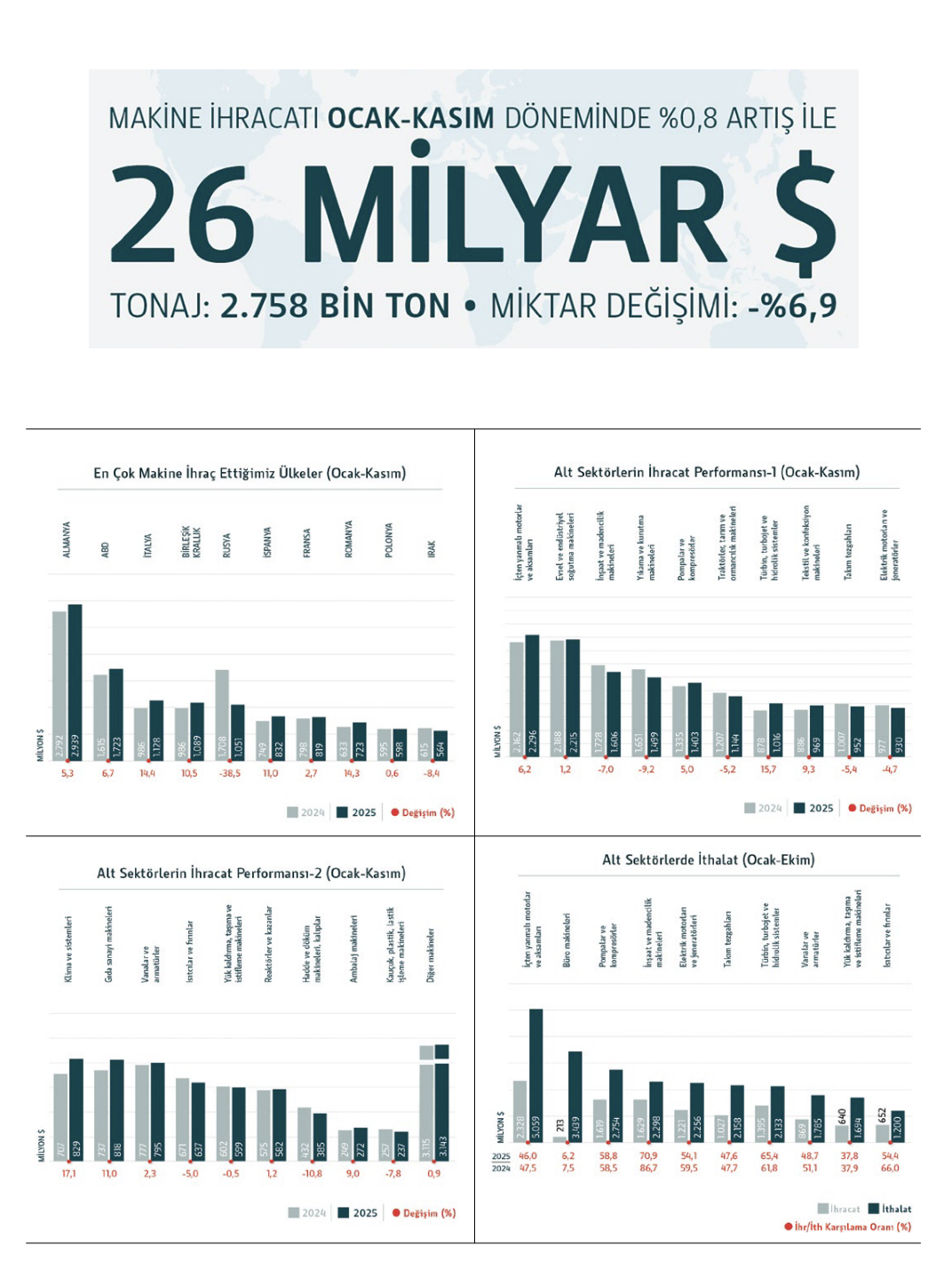 MAKİNE İHRACATI ALTI AYDA 11,4 MİLYAR DOLAR OLDU “GELECEK ÜÇ YIL MAKİNE SEKTÖRÜNÜN ALTIN ÇAĞI OLACAK”