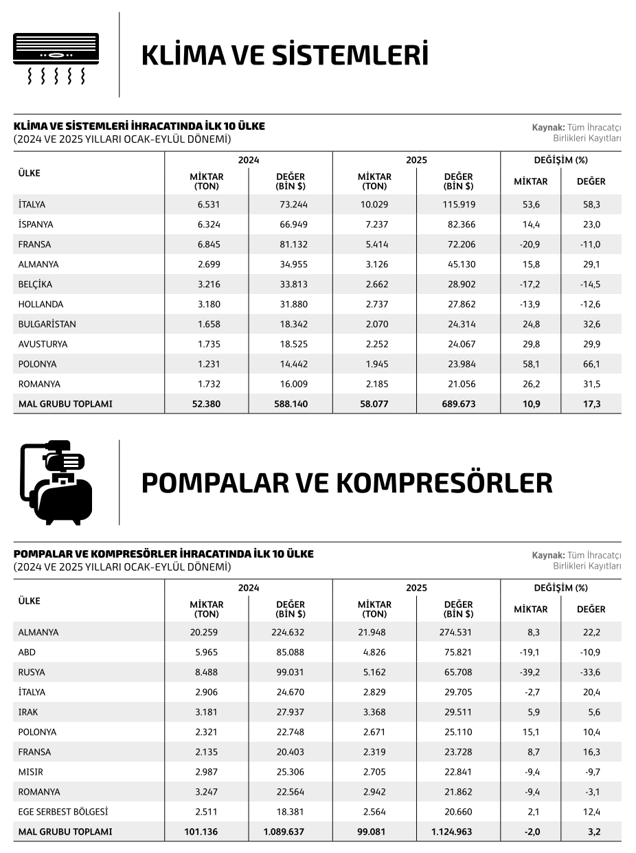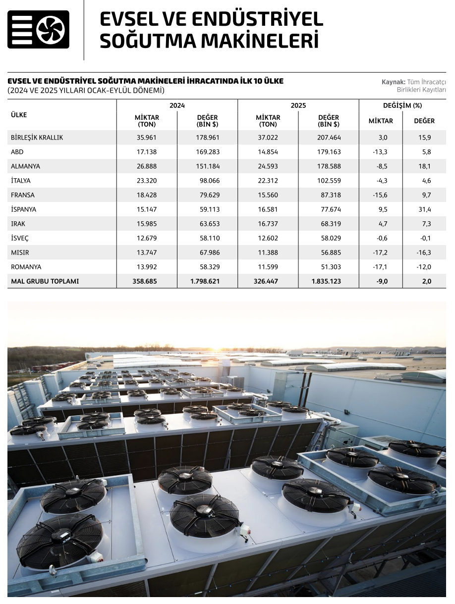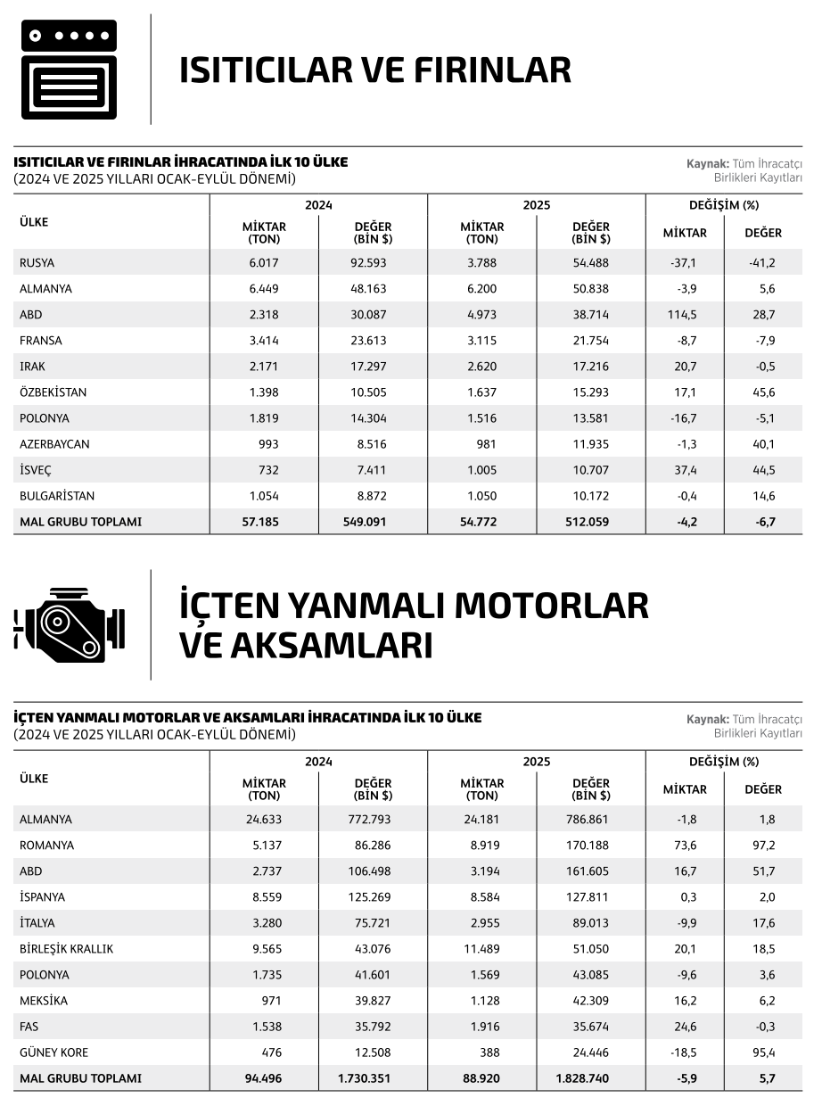 TÜRBİN, TURBOJET VE HİDROLİK SİSTEMLER ÜRÜN GRUBUNDA İHRACAT ARTIŞ ORANI YÜZDE 14,6 OLDU. MAKİNE İHRACATININ TÜRKİYE GENEL İHRACATINDAKİ PAYI YÜZDE 10,4 OLDU.