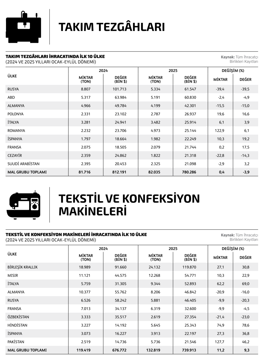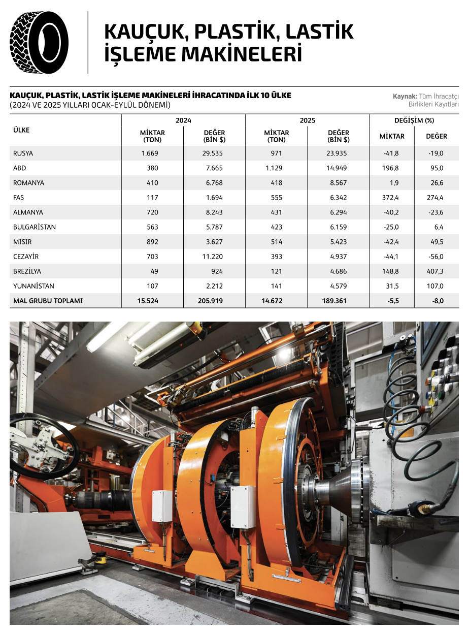 MAKİNE İHRACATI ALTI AYDA 11,4 MİLYAR DOLAR OLDU “GELECEK ÜÇ YIL MAKİNE SEKTÖRÜNÜN ALTIN ÇAĞI OLACAK”