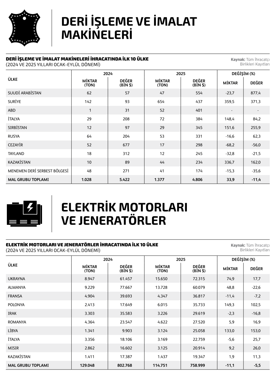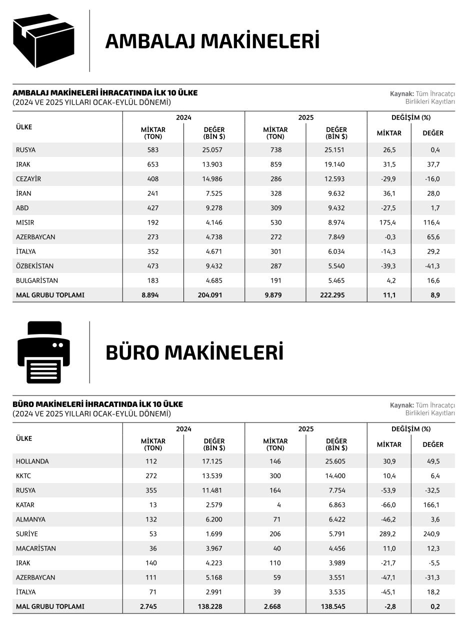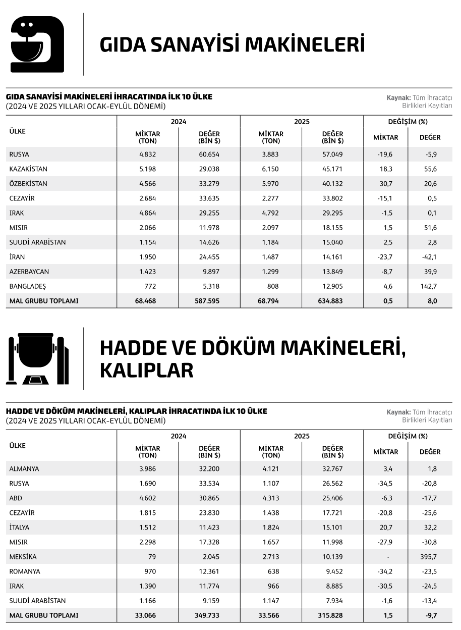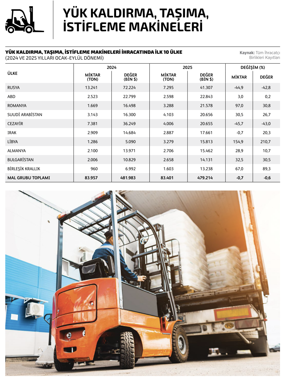 YILIN İLK İKİ AYINDA TOPLAM MAKİNE İHRACATI 2,7 MİLYAR DOLAR OLDU MAKİNECİLER ABD’YE İHRACATTA İLK SIRAYA YERLEŞTİİ