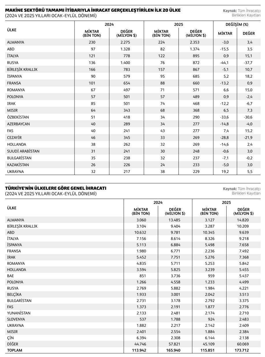 MAKİNE İHRACATI 9 AYDA 17 MİLYAR DOLAR OLDU “DAHA PAHALI BİR DÜNYAYA DOĞRU PALAS PANDIRAS GİDERKEN…”