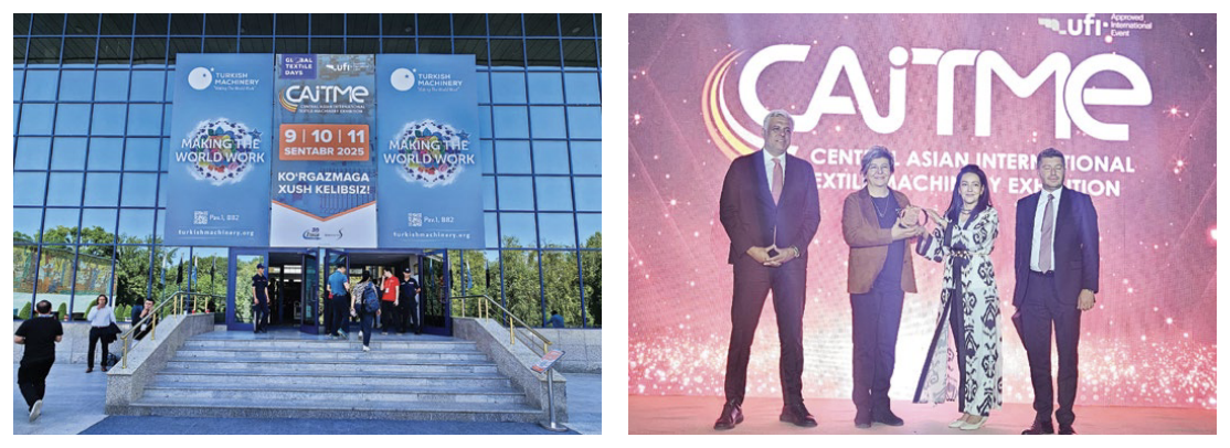 TÜRKİYE’NİN MAKİNECİLERİ 9-11 EYLÜL TARİHLERİ ARASINDA ÖZBEKİSTAN’IN BAŞKENTİ TAŞKENT’TE DÜZENLENEN CAITME FUARI’NA ANA SPONSOR OLARAK KATILDI. TEKSTİL MAKİNELERİ, AKSAMLARI VE TEKSTİL KİMYASALLARININ SERGİLENDİĞİ FUARDA TÜRKİYE’DEN 35 FİRMA ÜRÜN VE HİZMETLERİNİ SERGİLERKEN, MAİB’İN FUAR ALANINI DONATAN “TURKISH MACHINERY” REKLAMLARI ZİYARETÇİLERİN İLGİ ODAĞI OLDU.