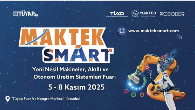 YENİ NESİL MAKİNELER, AKILLI VE OTONOM ÜRETİM SİSTEMLERİ FUARI MAKTEK SMART, 5-8 KASIM TARİHLERİNDE İSTANBUL TÜYAP FUAR VE KONGRE MERKEZİ’NDE KAPILARINI AÇACAK.